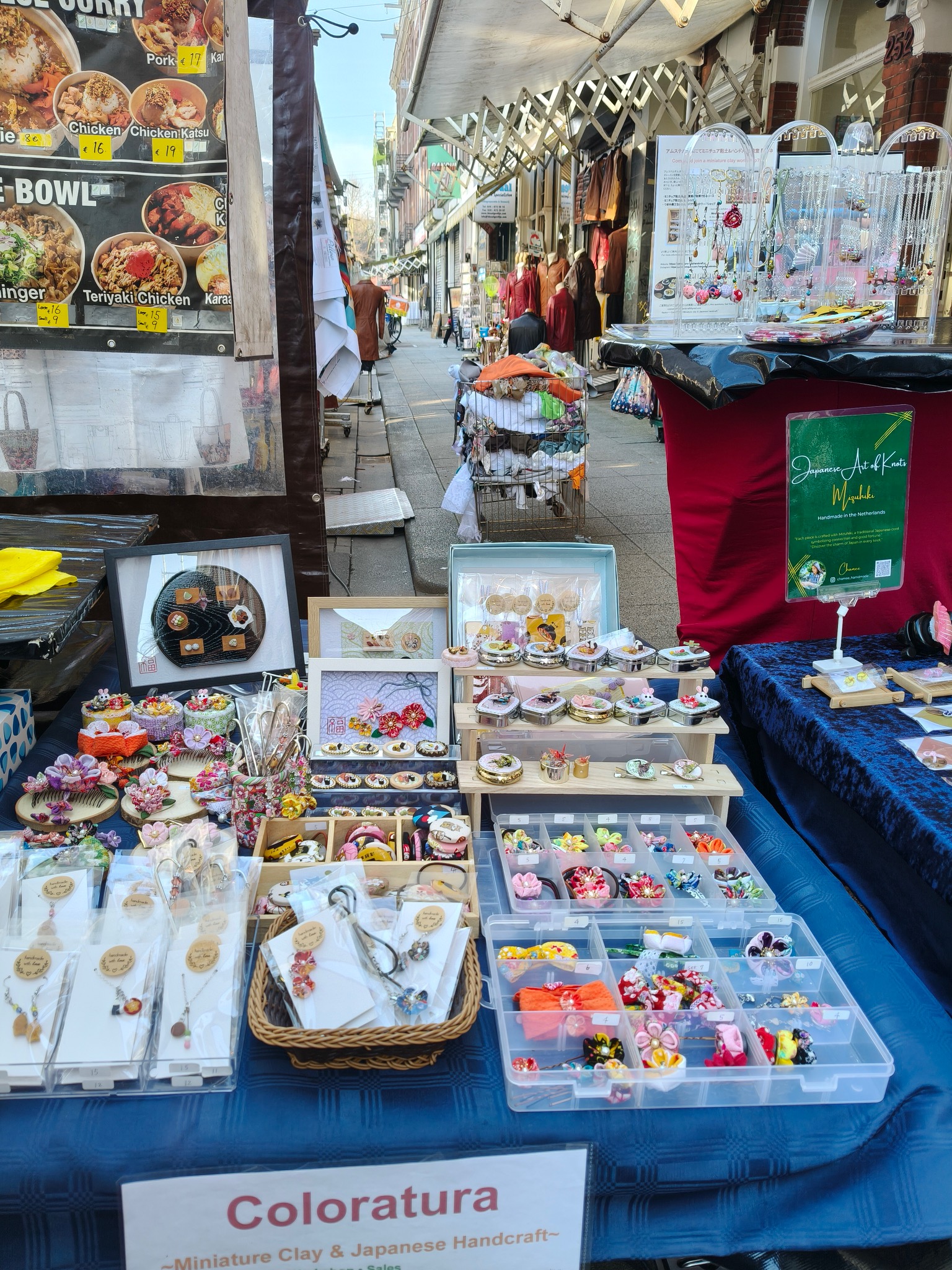 I’ll be bringing a selection of handmade miniature clay pieces, including tiny takoyaki accessories, Japanese sweets, and taiyaki, as well as tsumami-zaiku accessories (traditional Japanese fabric flowers) and other small handcrafted items.