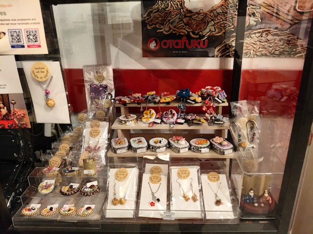 You’ll find miniature takoyaki, along with other Japanese-inspired miniature clay works such as onigiri, wagashi, and taiyaki, as well as tsumami-zaiku accessories.
